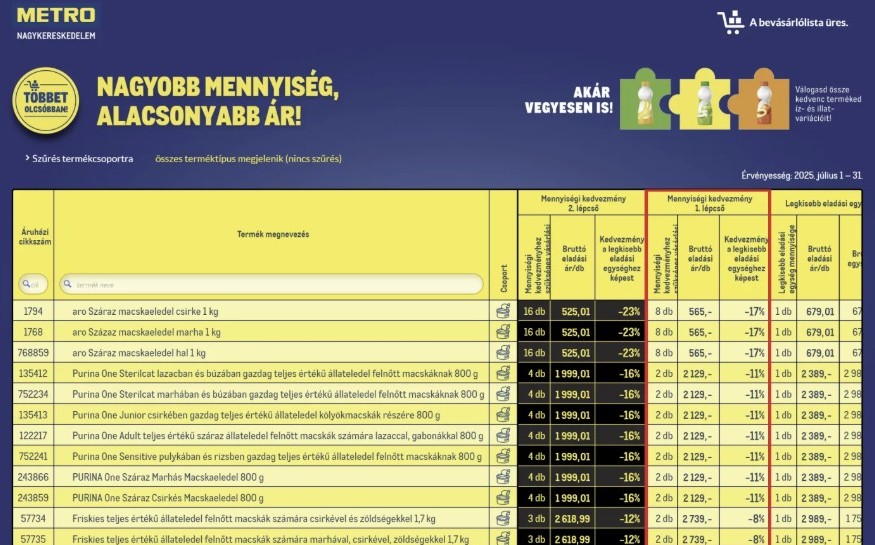 Közel 6.000 METRO-termék esetén (a METRO áruházakban sárga árcímkével jelölt termékek – lásd a lenti képen) már 1 darab vásárlása estén is a kedvezményes (középső – „Mennyiségi kedvezmény 1. lépcső”) nagyvállalati ársáv érvényes Rád!